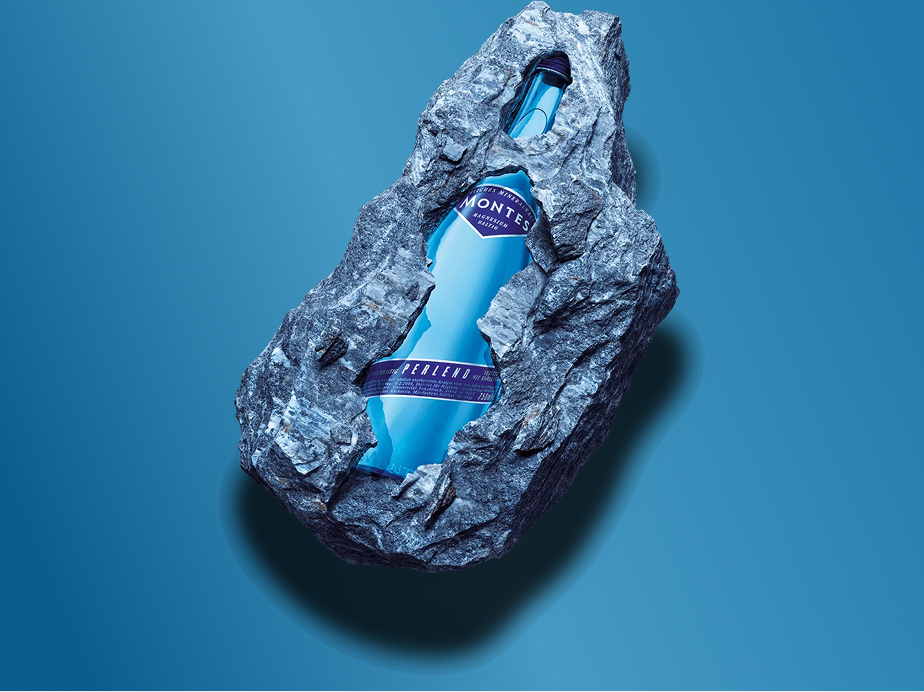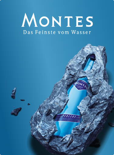 MONTES natürliches Mineralwasser in den Sorten perlend, leicht perlend und natürlich still in der blauen Glasflasche ist exklusiv in der Gastronomie erhältlich.